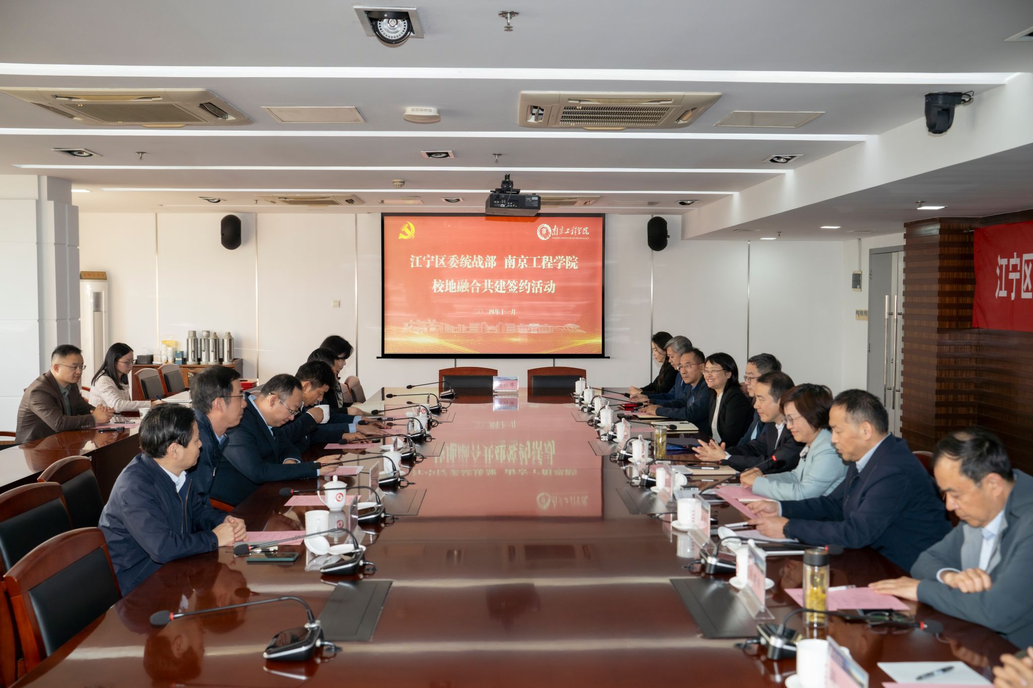 我校与江宁区委统战部举行统一战线工作校地融合共建签约仪式11月12日下午,我校与江宁区委统战部举行统一战线工作校地融合共建签约仪式。江宁区委常委、统战部部长孙兆金,区委统战部常务副部长张斌;我校党委书记孙爱武,党委常委、副校长汪群,副校长包永强等出席活动。江宁区委统战部相关领导、凯发各民主党派、统战团体负责人及代表参加活动。签约仪式由党委常委、组织部部长、统战部部长聂邦军主持。孙爱武对江宁区委统战部一行的到来表示欢迎,并介绍了凯发发展基本情况以及近年来... 2024.11.12