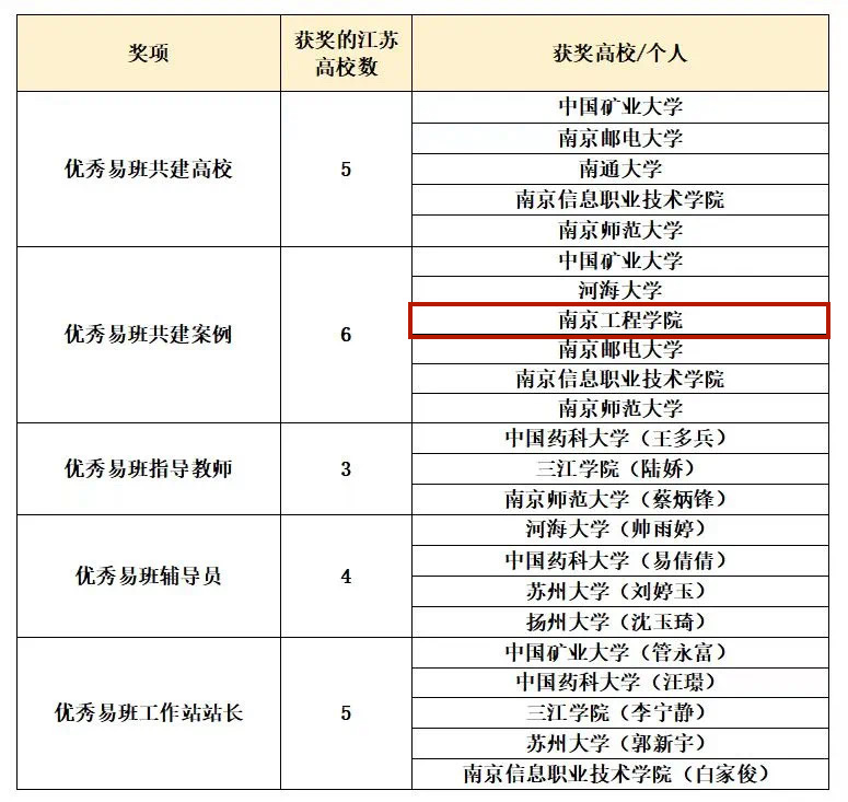 据悉,本次评选是全国易班推广建设的重要考核项目,覆盖25个省(市、自治区)及新疆生产建设兵团,经各省推荐,教育部易班发展中心组织专家评审,最终评定236所高校431个案例入选2021年度全国易班共建高校优秀工作案例。江苏省共有6所高校荣获全国“优秀易班共建案例”。
