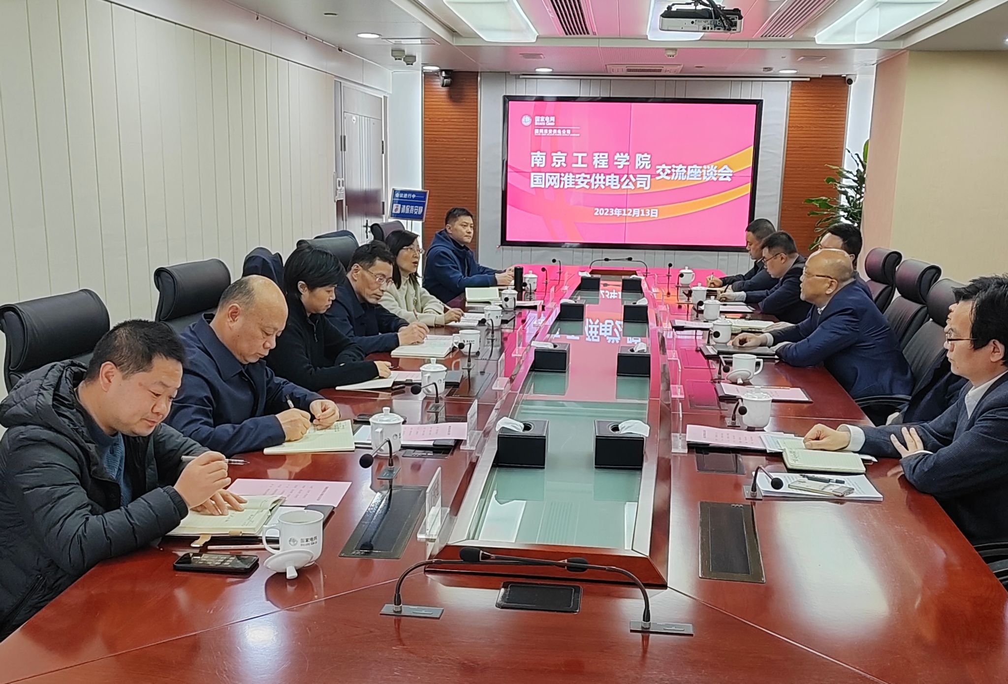 12月13日下午,党委副书记、校长张仰飞,党委常委、副校长汪群,党委常委、人事处处长张焱等一行赴国网淮安供电公司走访调研,与淮安供电公司总经理、党委副书记王金虎,副总经理朱晓峰、张同洲等进行了深入交流。