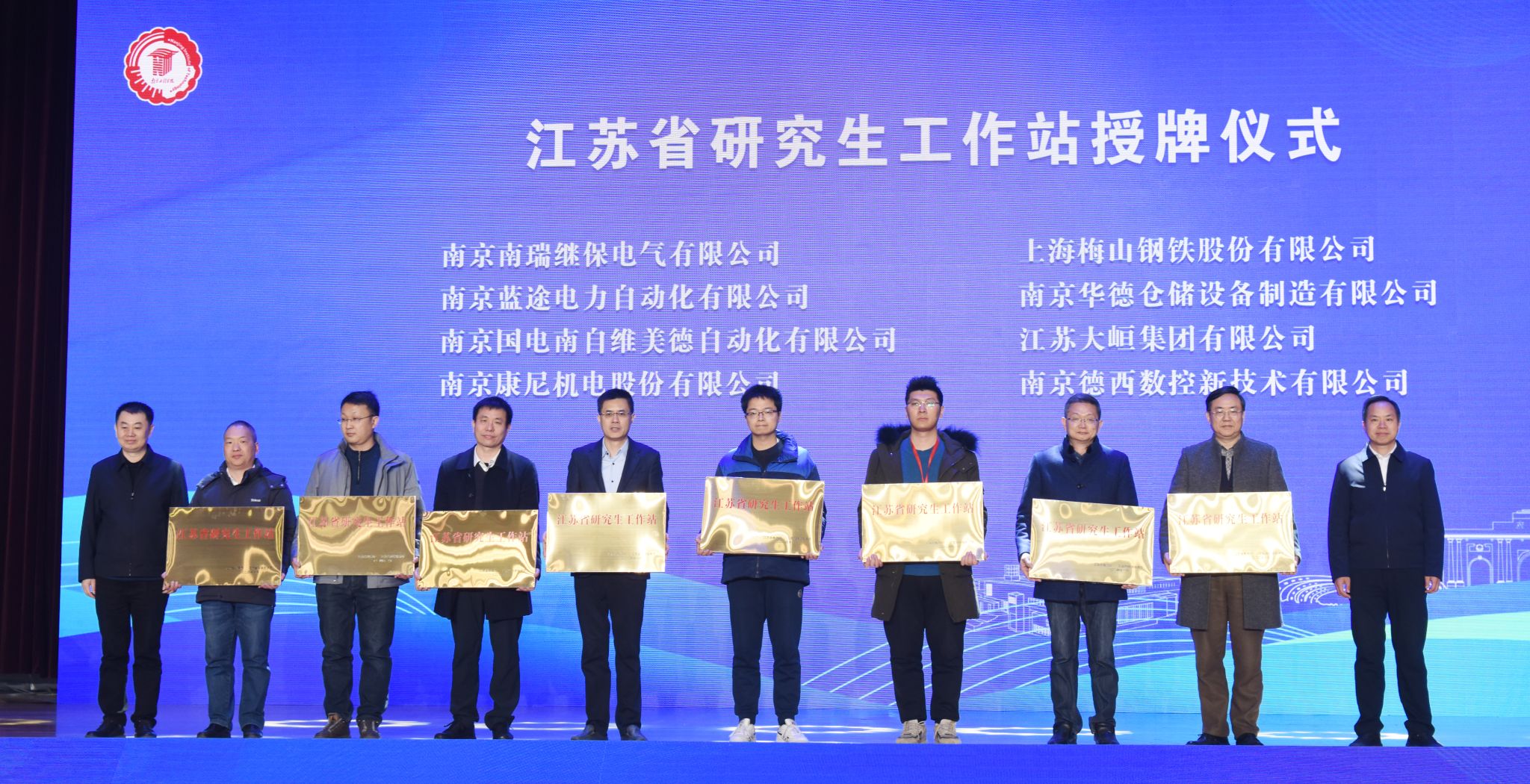 会上成立了校城科技发展联盟,进行了科技攻关项目对接签约,为产业教授颁发聘书,并为一批江苏省研究生工作站、产学研合作基地、学生就业基地、实践教育基地授牌。