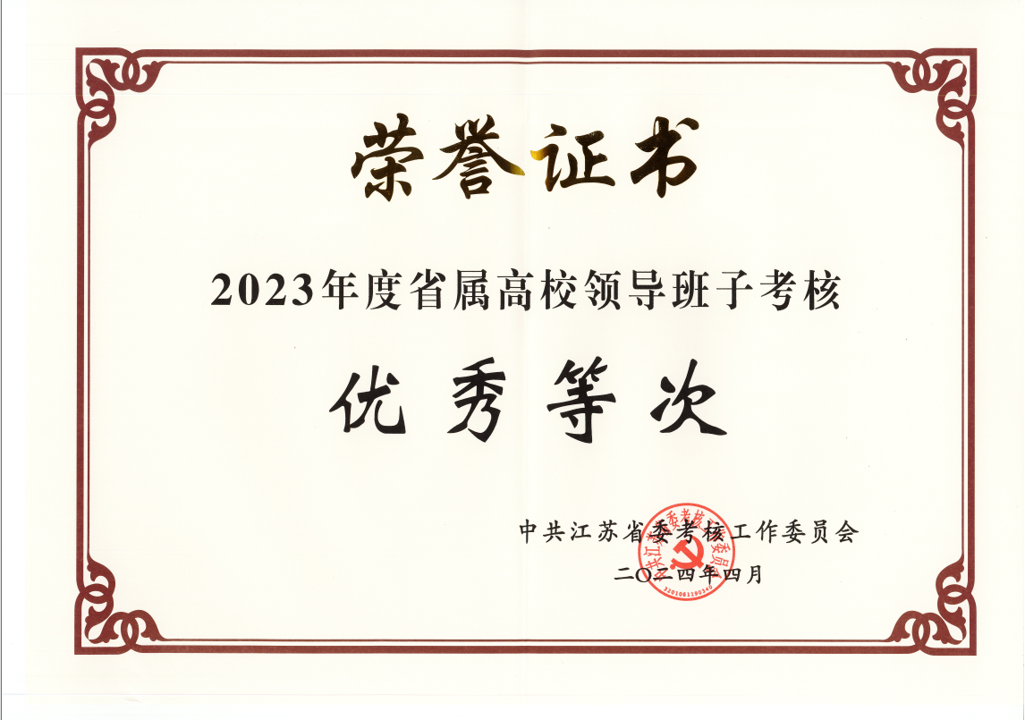 近日,中共江苏省委组织部公布2023年度地方普通高校领导班子考核结果,我校领导班子在考核中获评“优秀”等次。这是省委对凯发领导班子团结奋进、担当实干的高度肯定和认可,也充分体现了校党委紧扣立德树人根本任务,以高质量党建引领事业高质量发展所取得的显著成效。