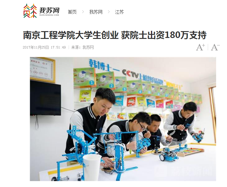 学生们的创业过程深深打动了中国国程院院士缪昌文,缪院士出资180万打造韩博士机器人创客中心,是专门为4—16岁少年儿童设计打造的一个具备参观、体验、实践、培训及成果展示的综合性科普场所。韩博士机器人创始人黄木水表示,“我们将会一直坚持公益创业的道路,把我们的科教新星之火燃遍全世界,让更多的青少年儿童,能够享受到我们的科教服务。让科学在更多的孩子中流行起来。”(来源:江苏教育频道记者/蒋海涛编辑/桂丹)