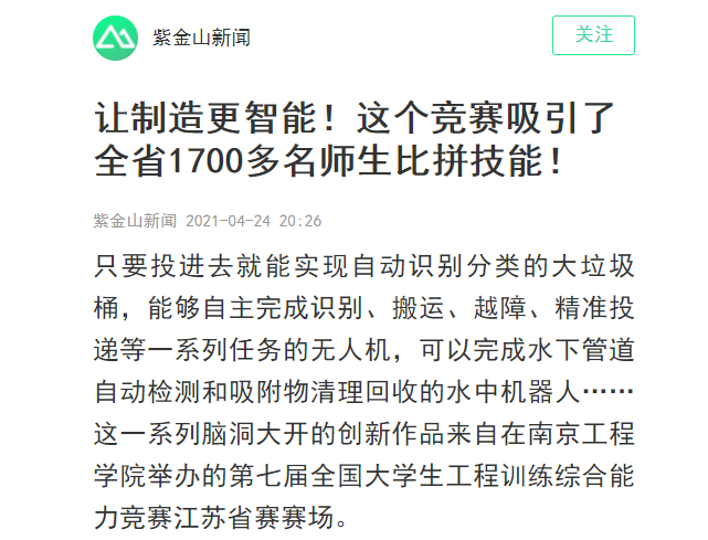 只要投进去就能实现自动识别分类的大垃圾桶,能够自主完成识别、搬运、越障、精准投递等一系列任务的无人机,可以完成水下管道自动检测和吸附物清理回收的水中机器人……这一系列脑洞大开的创新作品来自在凯发k8官网举办的第七届全国大学生工程训练综合能力竞赛江苏省赛赛场。