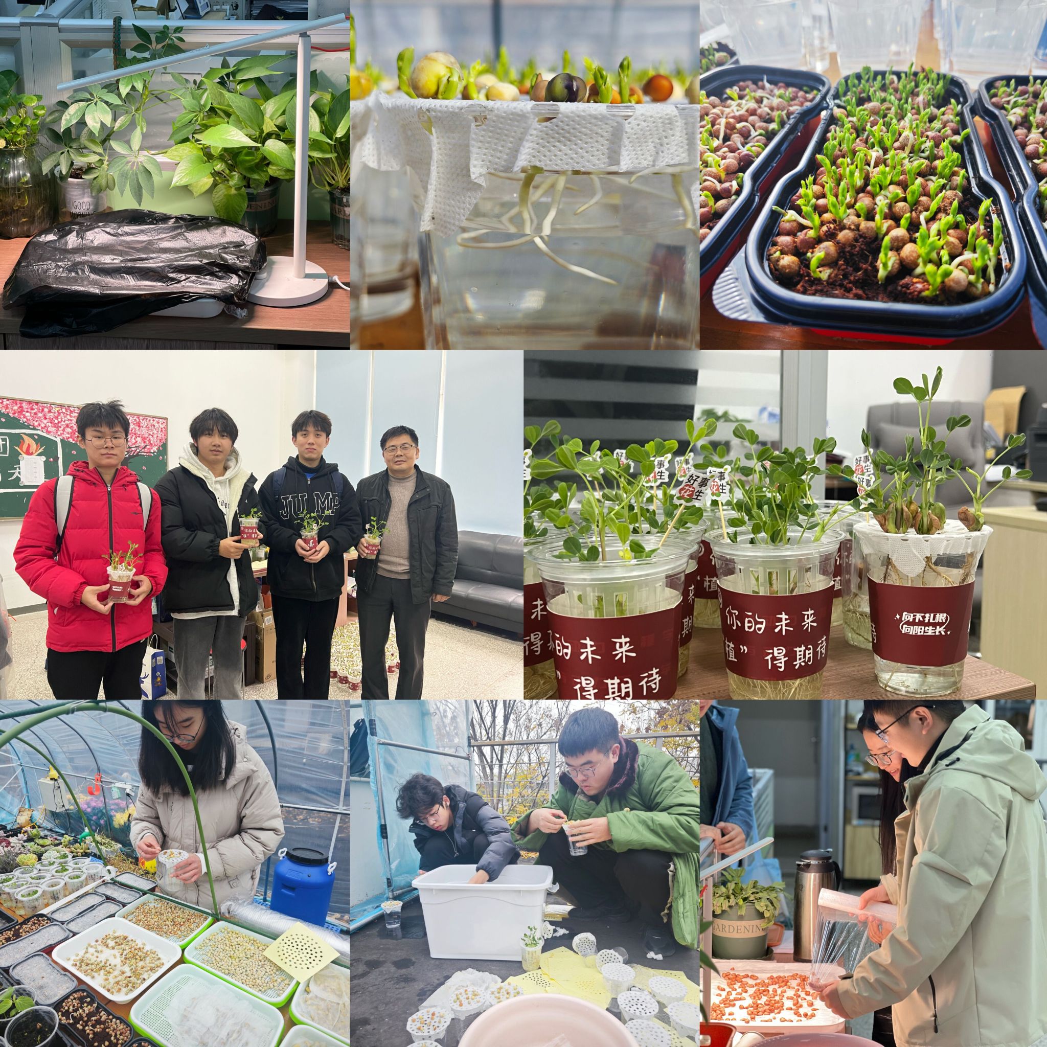 “为考研学生送祝福已连续开展多年,是学院的一项传统活动,也是考研学子共同的珍贵回忆。我们一直在思考,什么样的心意既有思想深度又有人文温度呢?”毕业班辅导员介绍道,“缘起学院的‘植茁’德育工作室,我们想通过亲手种植告诉同学们,一定要向下扎根,坚信忙有所得,耕有所获。”这样的创意得到了同学们的积极响应,学院提前2个月开始筹备。选种、泡发、促芽、移盆、日常养护……每一株苗都是从种子孕育成长起来的,同学们能够清楚看到根系和植株的一步步发育,直到郁郁葱葱。